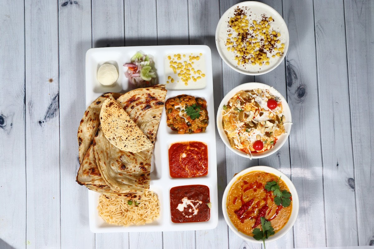 The menu is notably diverse, focusing on vegetarian North Indian and Chinese offerings with crowd-pleasers like Maharaja Thali, Kadhai Paneer, and Raj Kachori sharing space with options like noodles and red sauce pasta. This variety speaks to a broad local palate, catering to both traditional tastes and those looking for lighter or fusion options. Light bites like masala dosa or poha suggest it’s also a place locals might visit for breakfast or snacks, though the full meal appeal leans toward lunch or dinner outings.